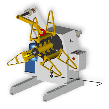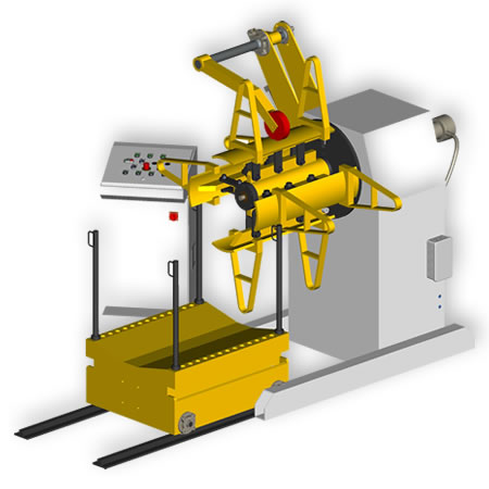 B) Вертикальные Разматыватели с Гидравлическим Разжимом (с гидравлической загрузочной тележкой)